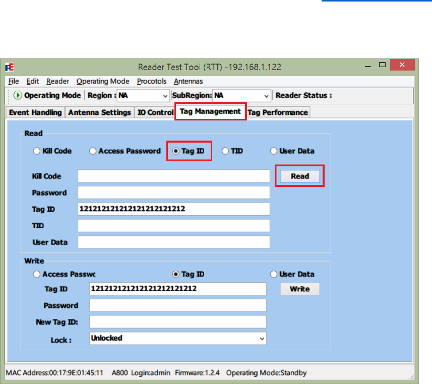 1. Select Tag Performance tab after logged in Reader Test Tool (RTT).