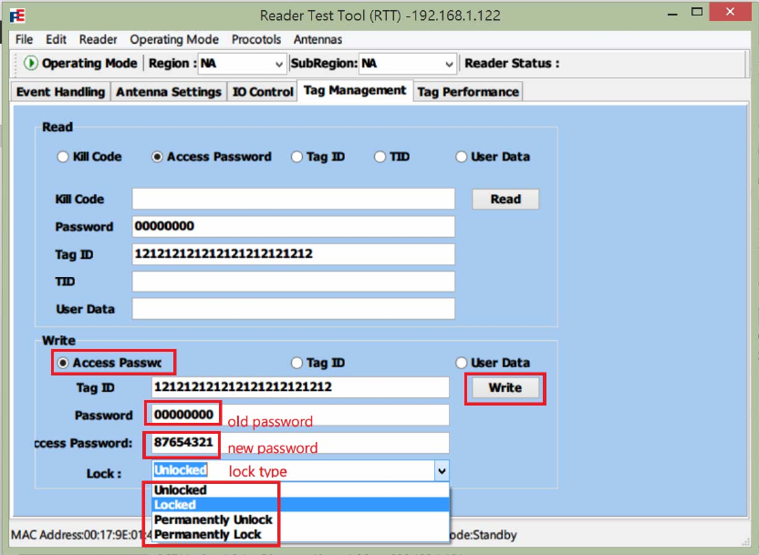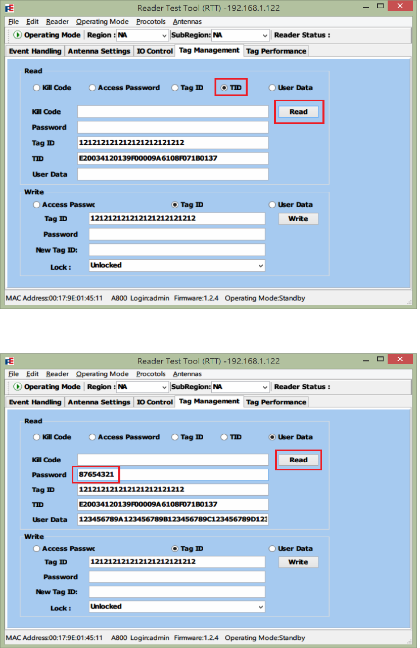 1. Select IO Control tab after logged in Reader Test Tool (RTT).