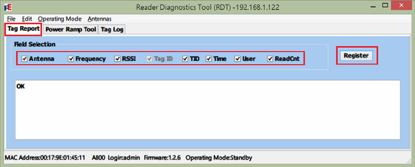 1. Select Tag Report tab after logging in Reader Diagnostics Tool (RDT).