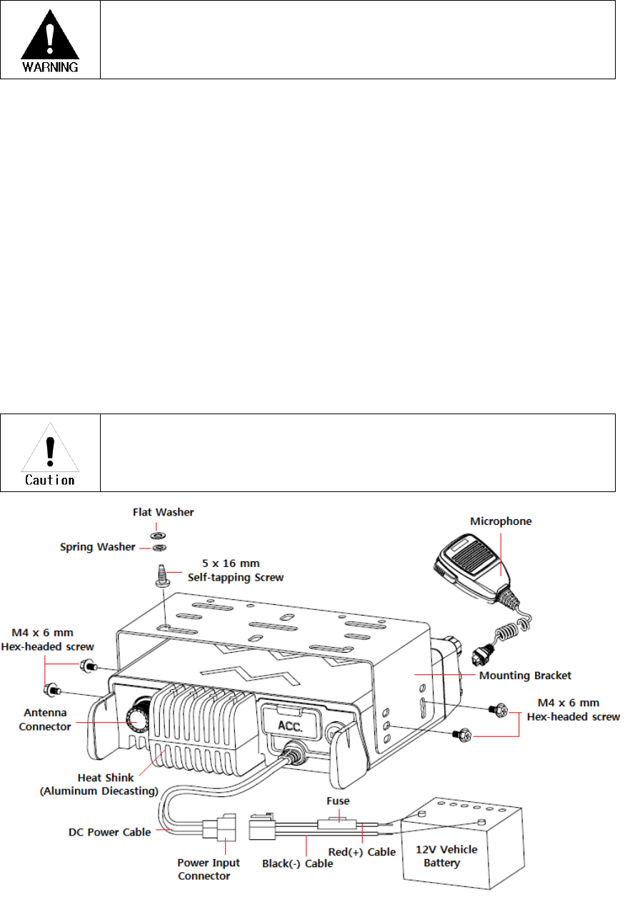 Do not operate the transceiver when vehicle engine is stopped. The