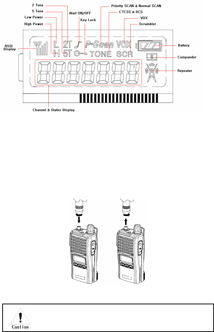 ■ DO NOT operate the radio without a proper antenna attached, as this may damaged