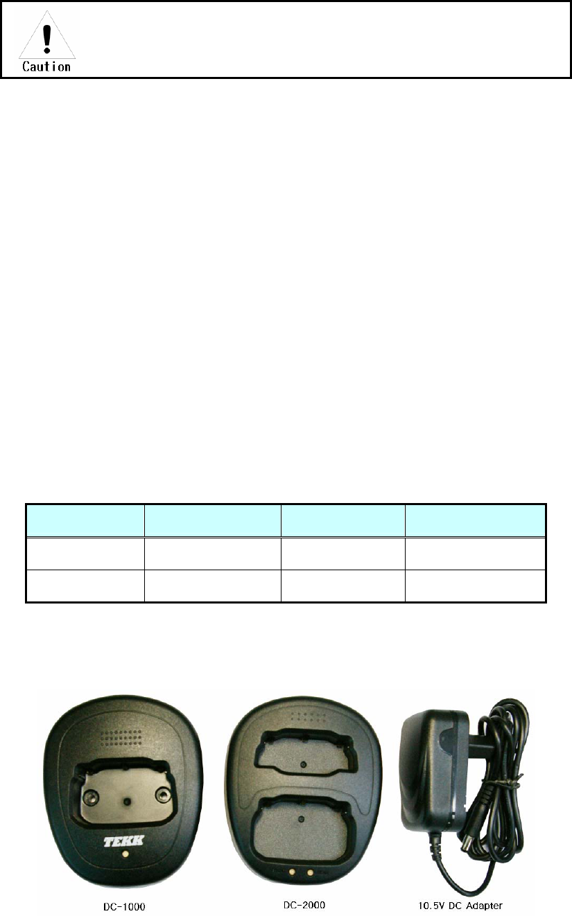 NEVER connect the transceiver to a power source other than the Battery listed below Such