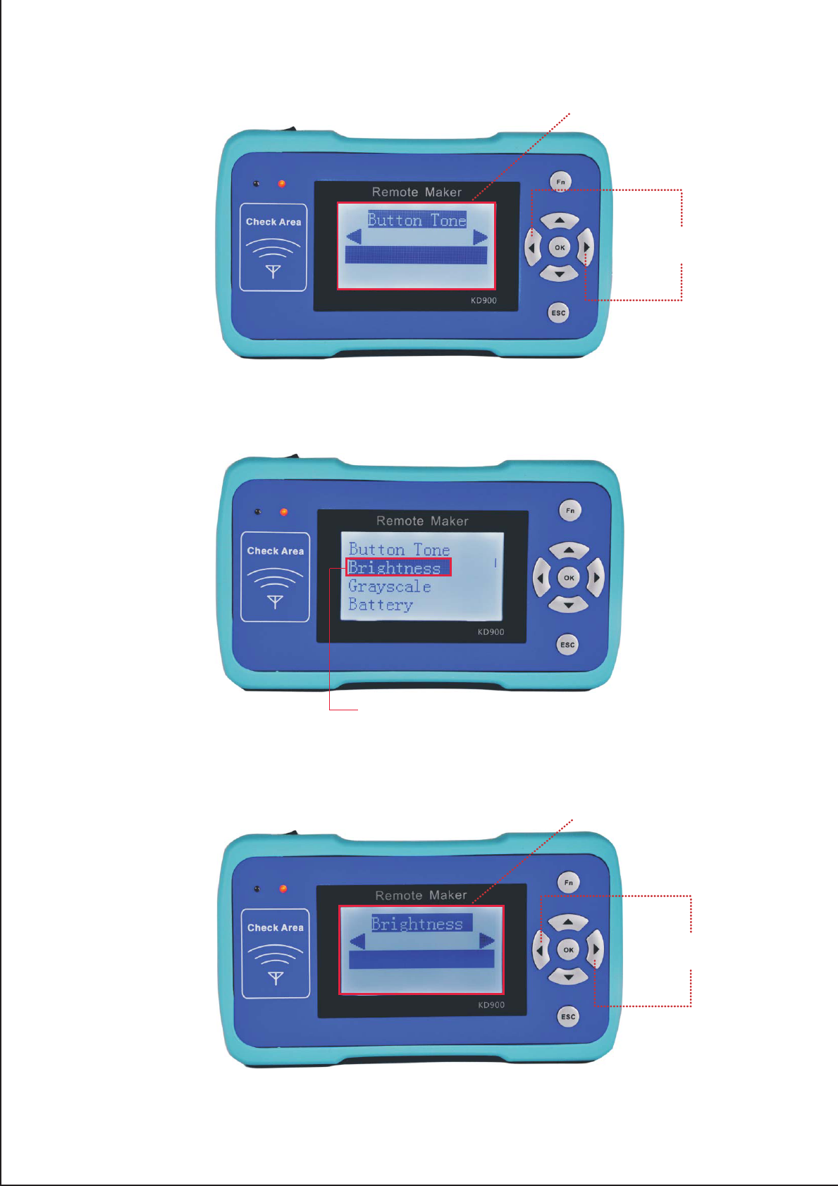 Enter system setting site, there you can adjust button tone, brightness, grayscale