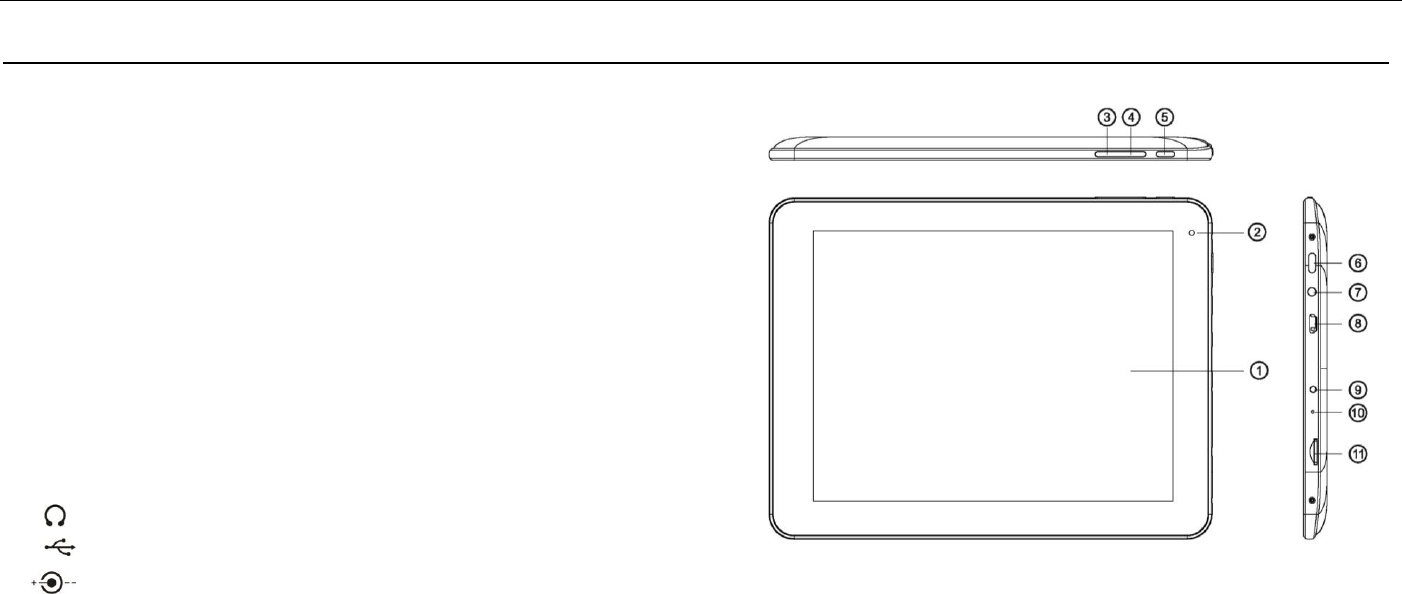 ⑦ :Earphone jack: 3.5mm standard earphone jack.