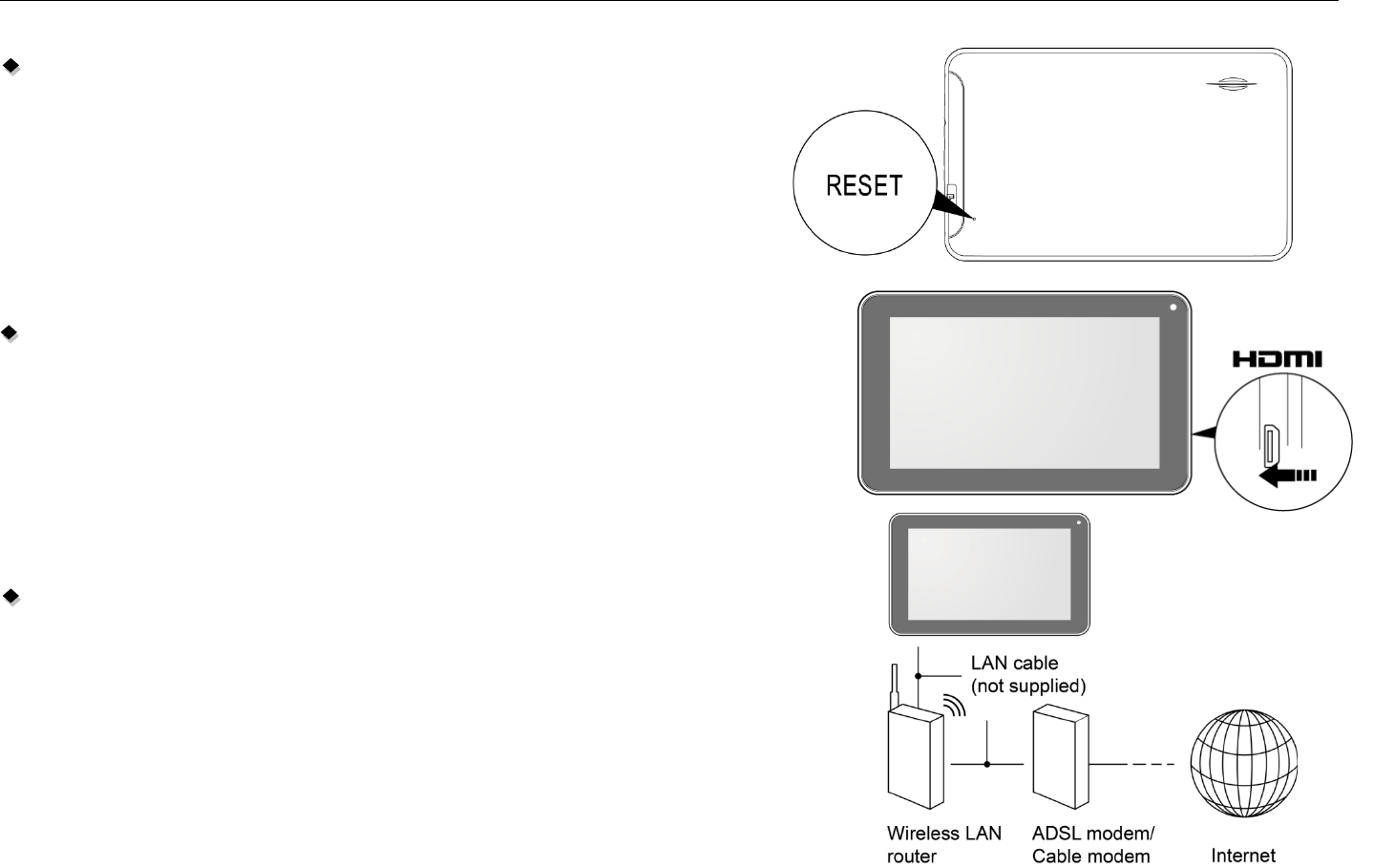 Do not drop or crash the device to prevent the violent impacting between the display and the capacitive touch screen. Or the