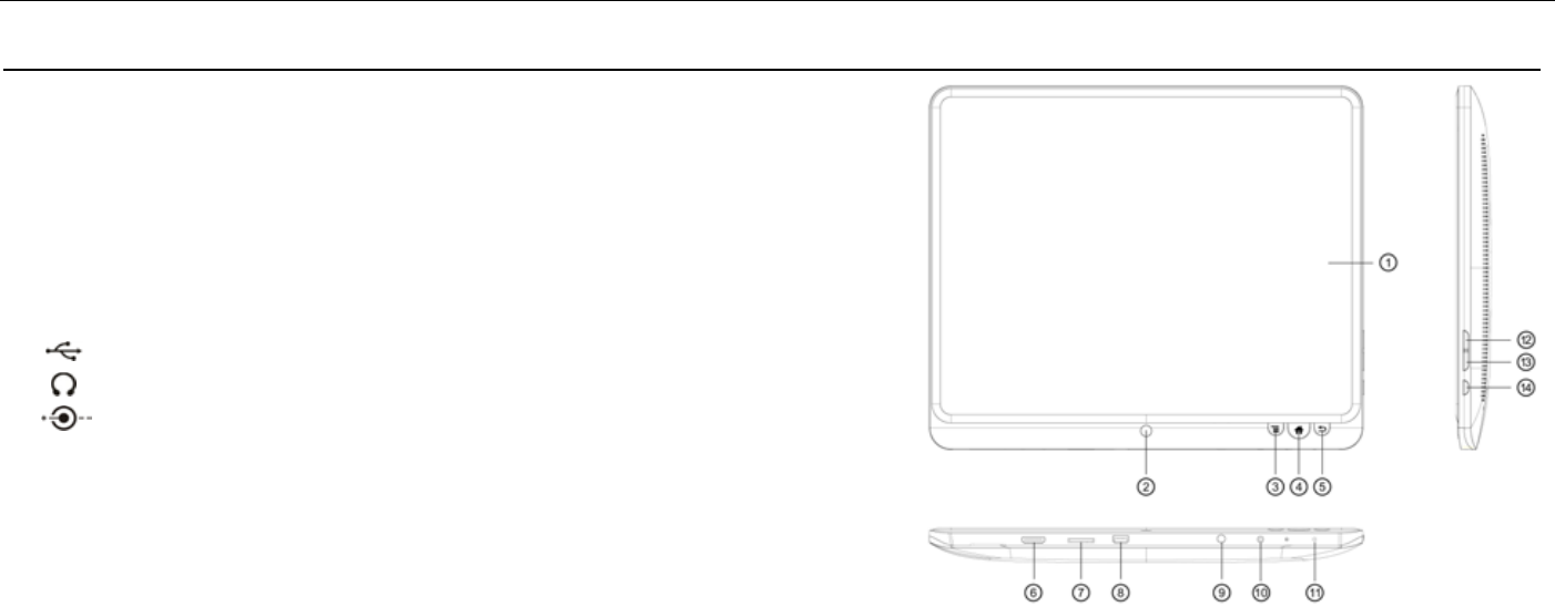 ⑭POWER: Turn on/off the device by long pressing this button.
