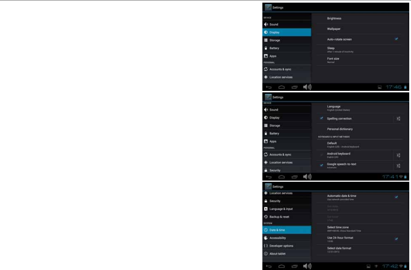 Date & time: when the internet is connected , turn on “Automatic date & time”,