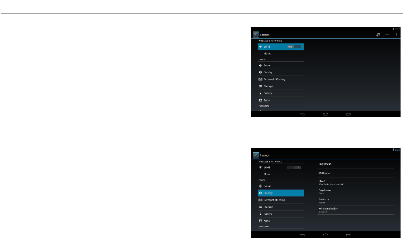 Wi-Fi: Click ON or OFF to open or close Wi-Fi. When open Wi-Fi,the