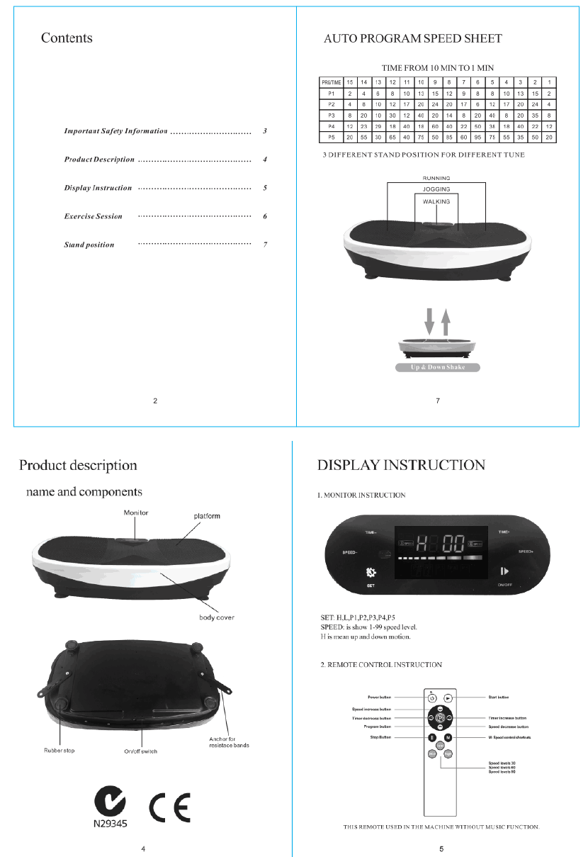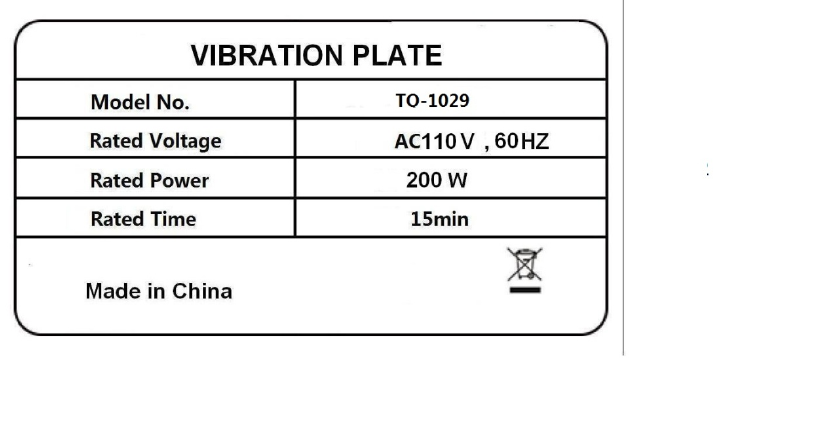 YONGKANG TAIQI FITNESS EQUIPMENT TQ-1029 VIBRATION PLATE User Manual