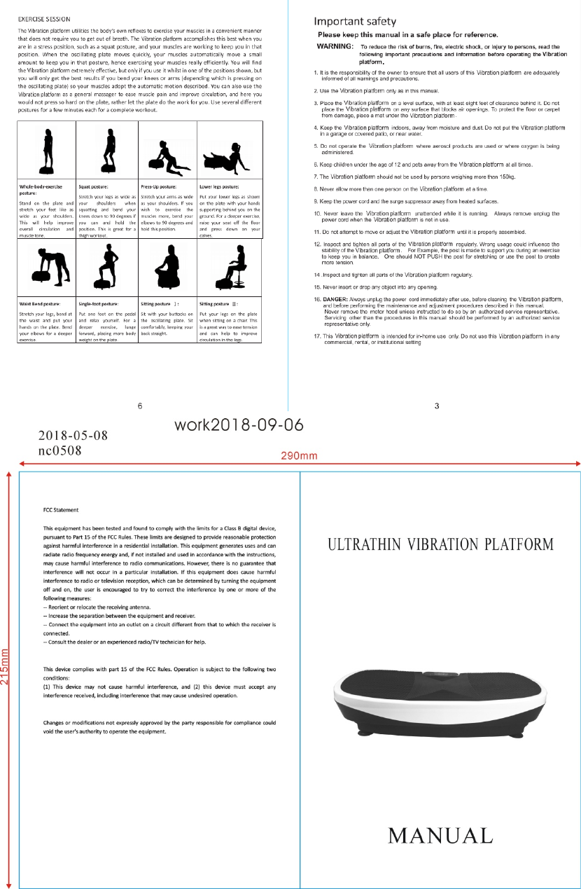 YONGKANG TAIQI FITNESS EQUIPMENT CO.,LTD. VIBRATION PLATE Users Manual