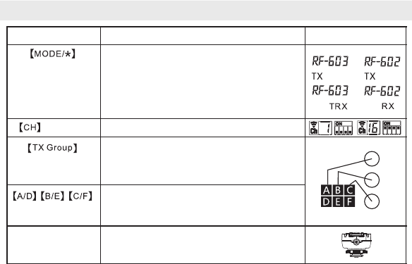 1)Transmitter settings: In TX status, press the grouping button for setup; in TRX