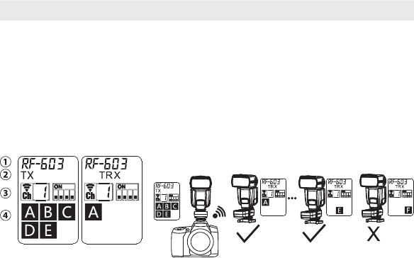 (TX status) to test the flash once. When fully pressing the release button of camera