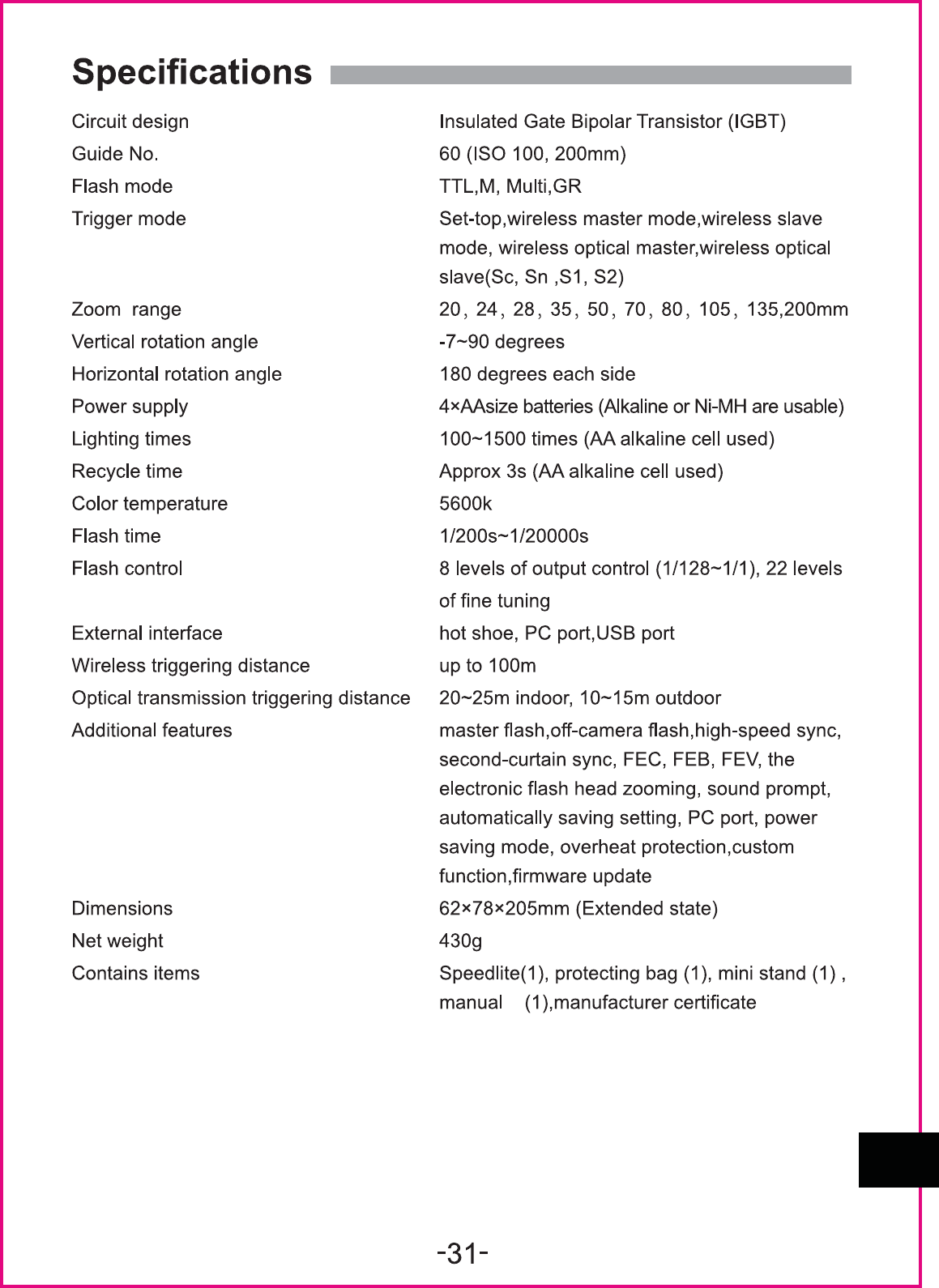 SHENZHEN YONGNUO PHOTOGRAPHIC EQUIPMENT CO., LTD SPEEDLITE YN600EX RT II EN