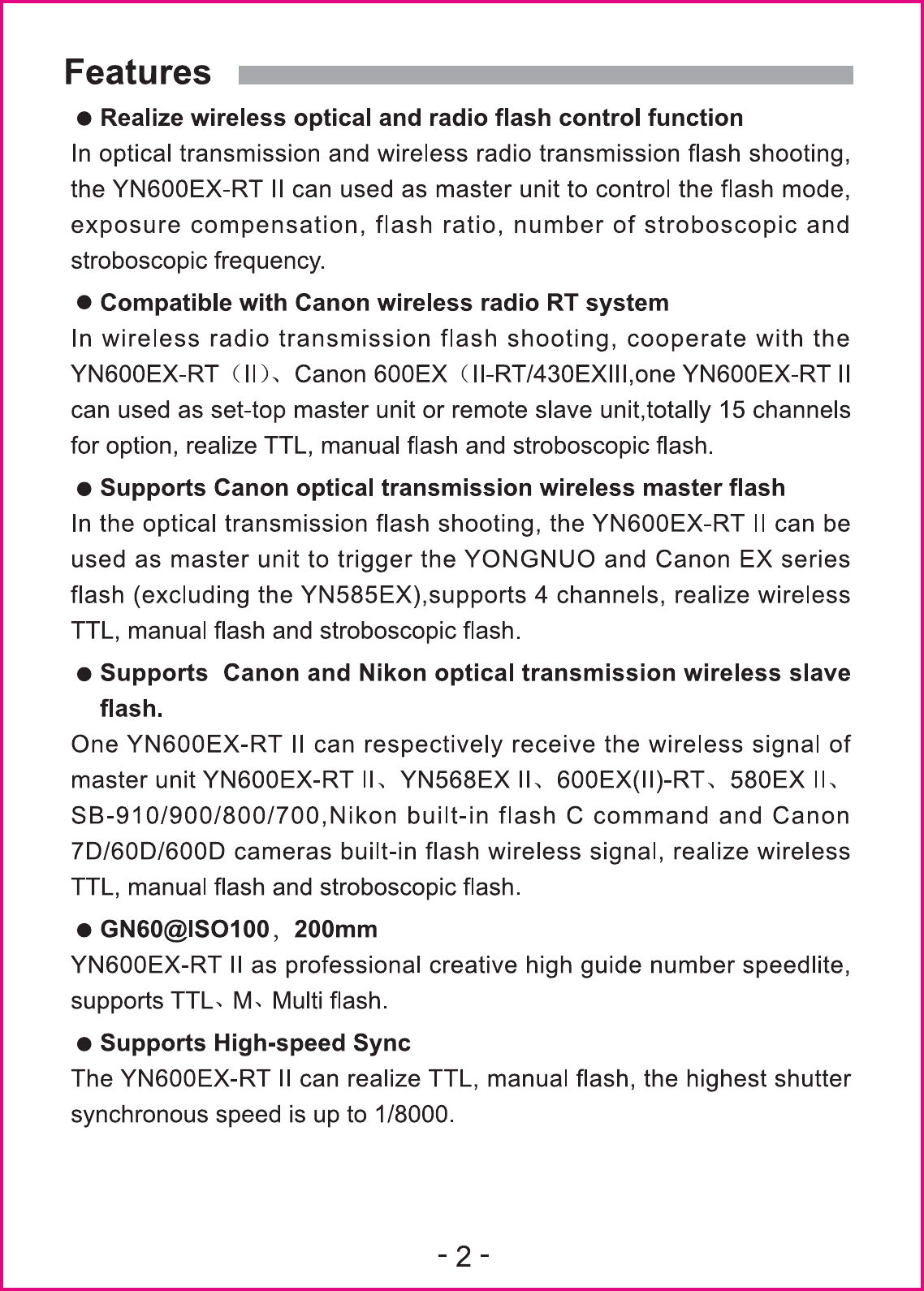 YONGNUO PHOTOGRAPHIC EQUIPMENT YN600EX-RTII SPEEDLITE User Manual YN600EX RT II EN