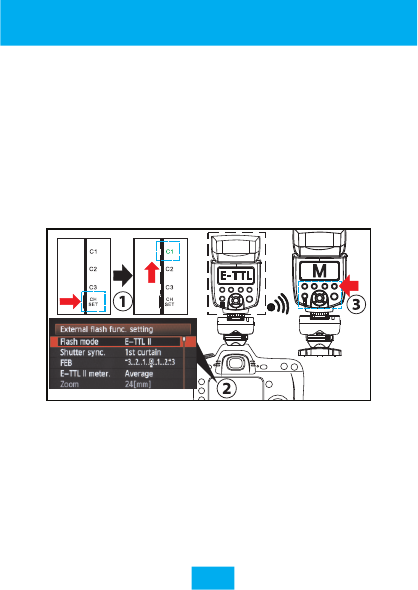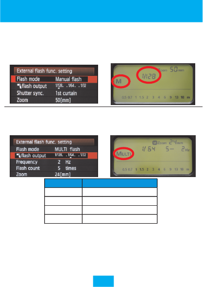 Flash mode: E-TTL(II), Manual flash, Multi flash