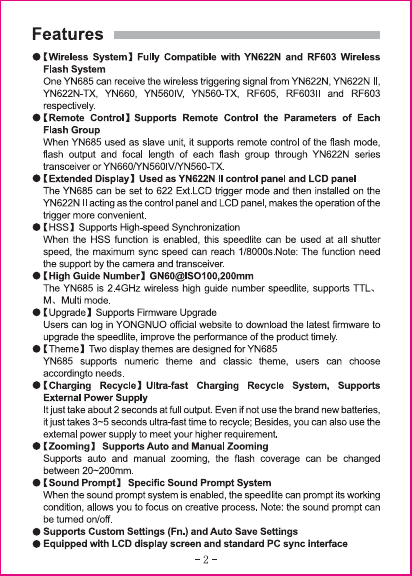 YONGNUO PHOTOGRAPHIC EQUIPMENT YN685 SPEEDLITE User Manual