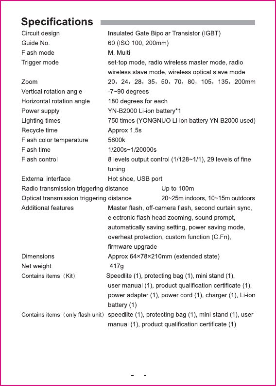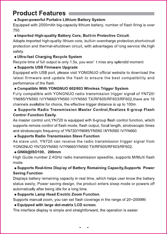 YONGNUO PHOTOGRAPHIC EQUIPMENT YN720 SPEEDLITE User Manual YN720