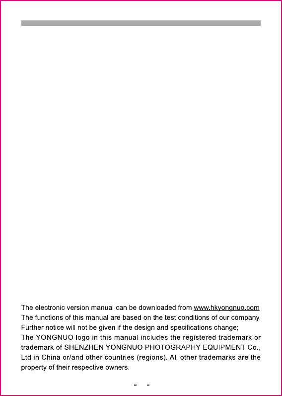 Manufacture:SHENZHEN YONGNUO PHOTOGRAPHIC EQUIPMENT