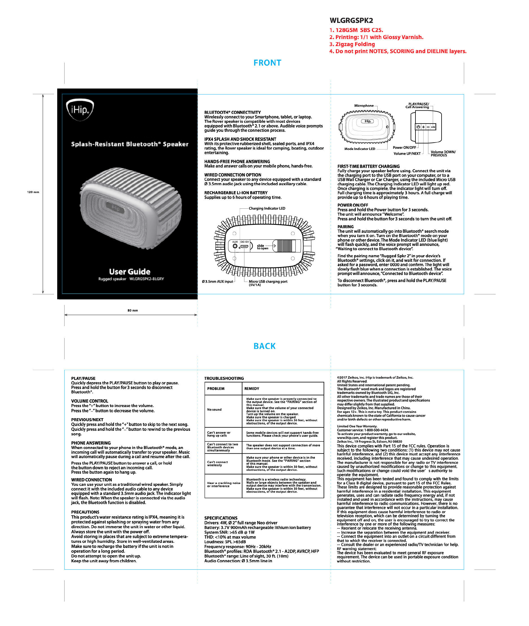 YUXINXIN ELECTRONICS 017BTS001 Rugged Speaker User Manual 15 WLGRGSPK2 BLGRY UserMan r2