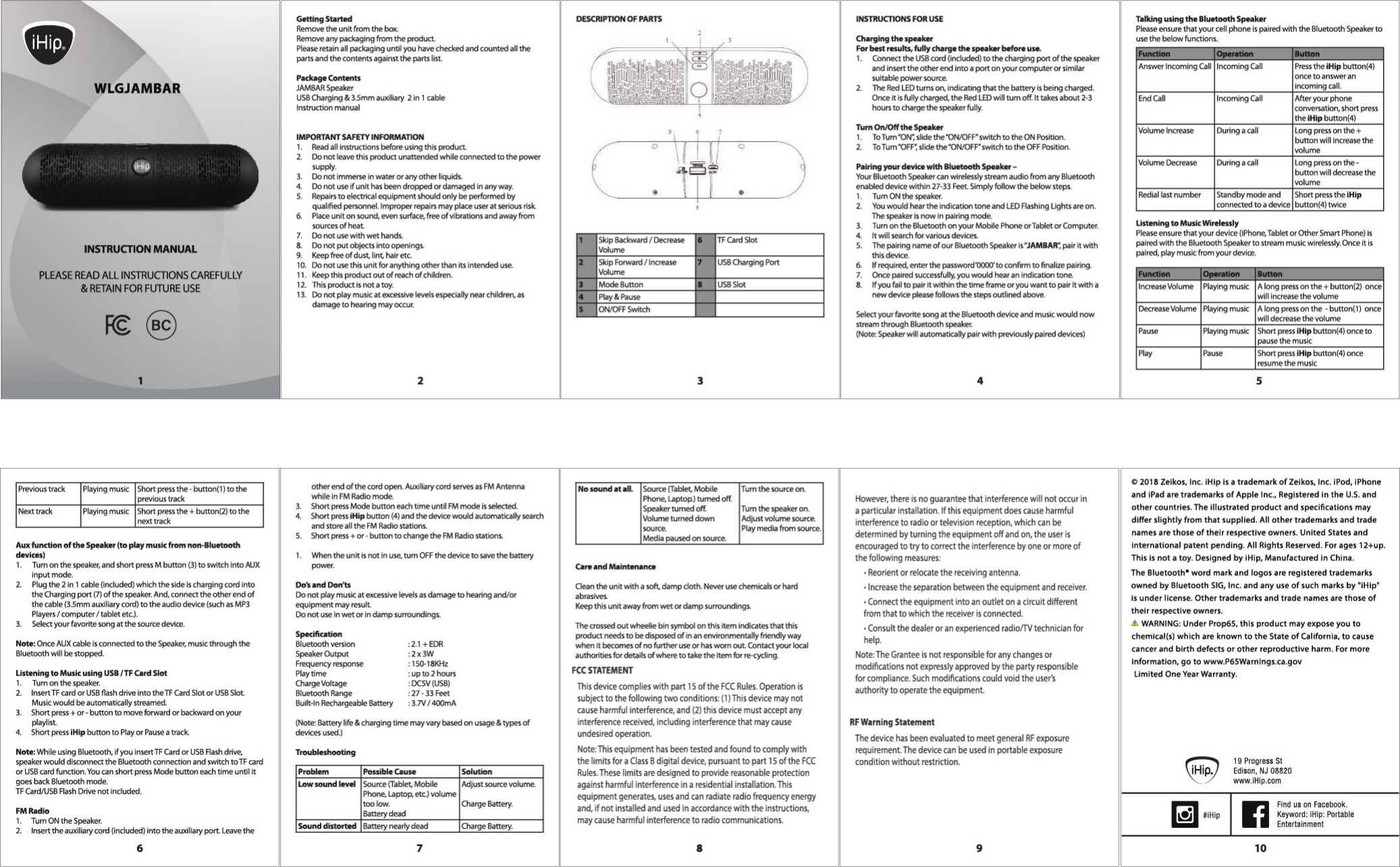 YUXINXIN ELECTRONICS 018BTS002 JAMBAR Speaker User Manual