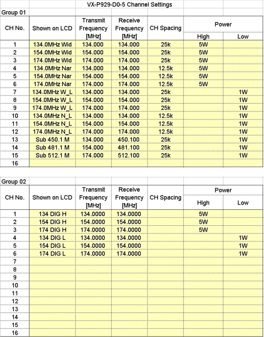 As shown in tables below, Group 01 is assigned to analog channel group, and