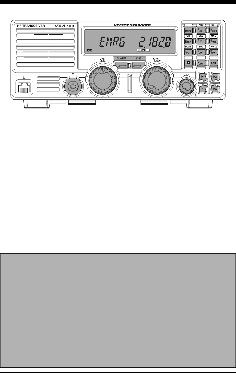 Page 1VX-1700 OPERATING MANUAL