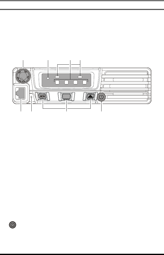 Press and hold in this button for 2 seconds to toggle the transceiver’s power “on”