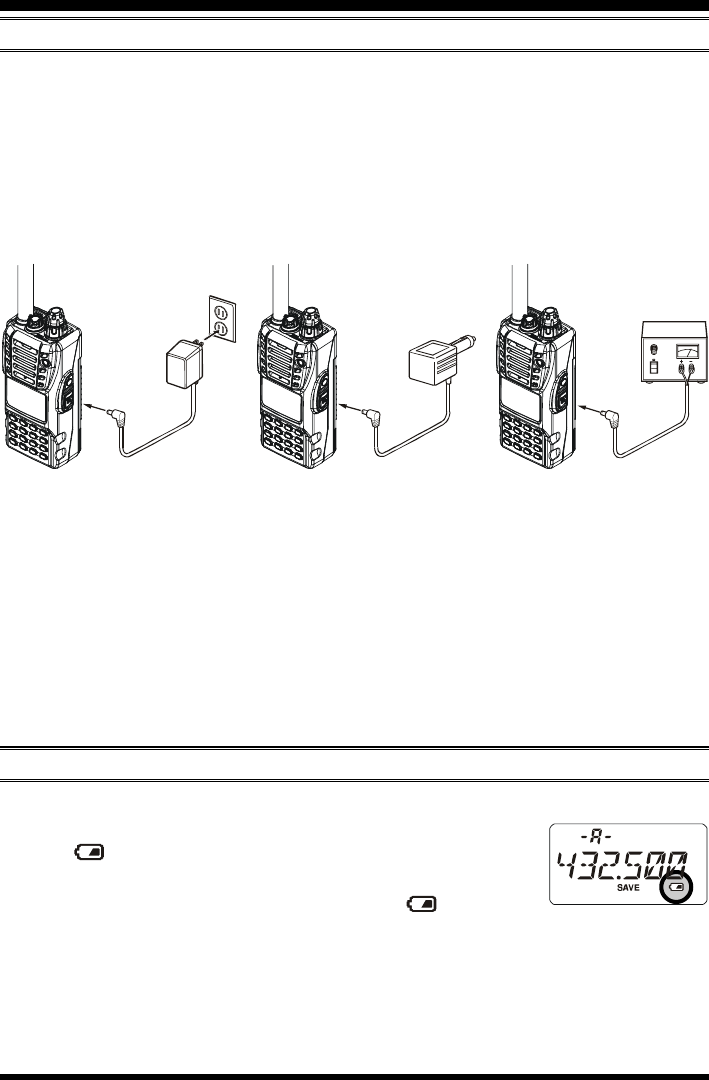 (Negative Ground) Operating: 6.0 ~ 16.0 V DC (EXT DC Jack)