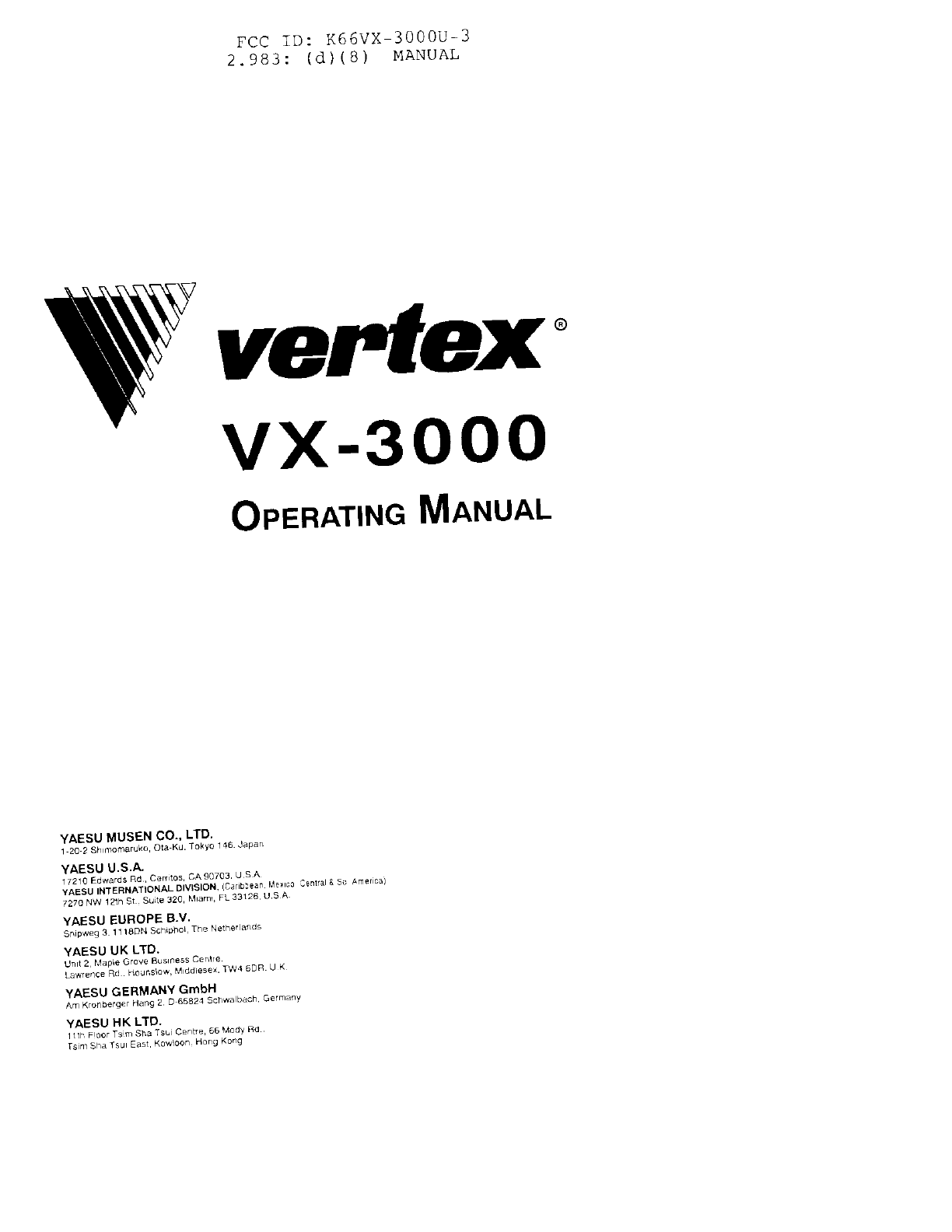 Yaesu Musen VX-3000U-3 Mobile Transceiver User Manual 8