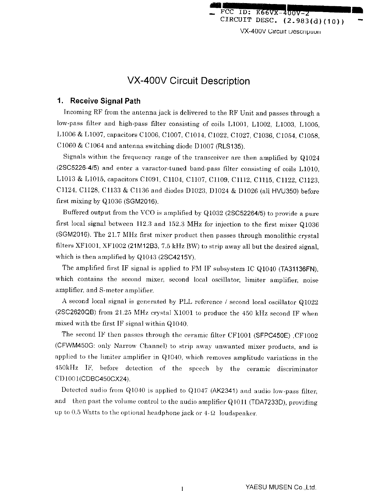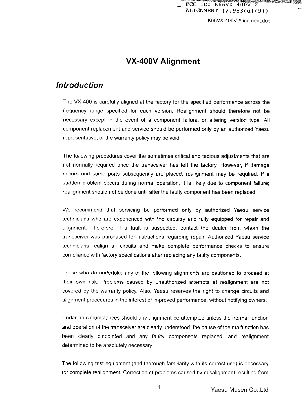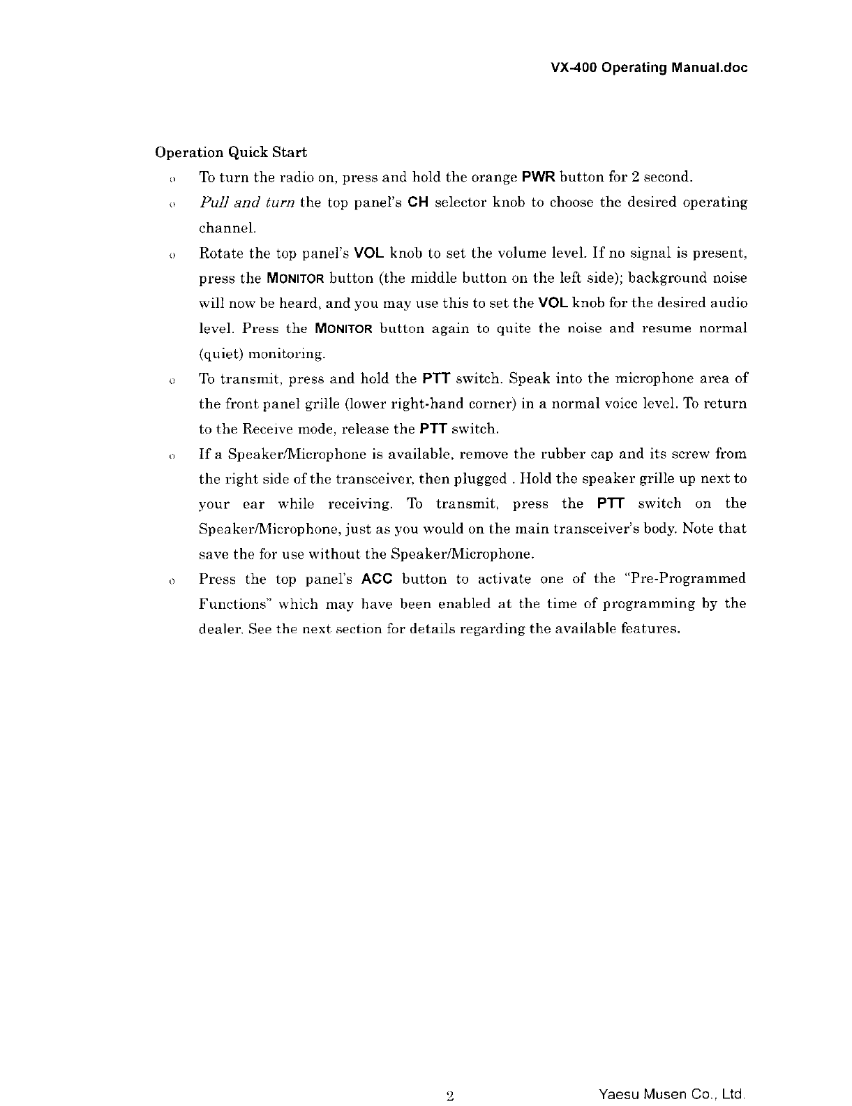 Yaesu Musen VX-400V-2 User Manual 79062