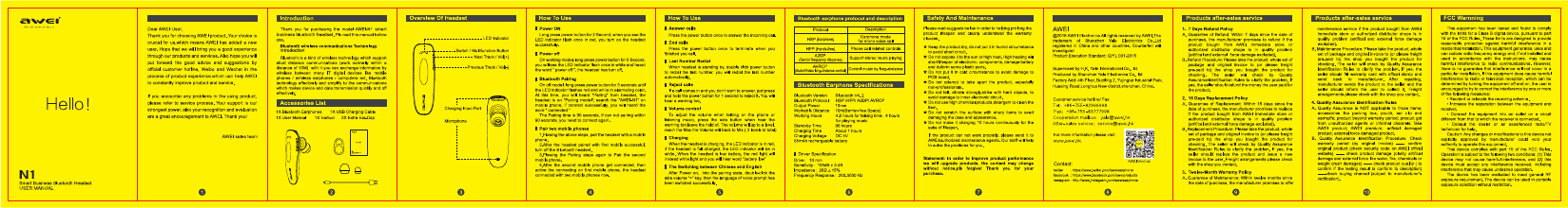 Yale Electronics N1 Bluetooth Sport Headset User Manual N1 Manual FCC