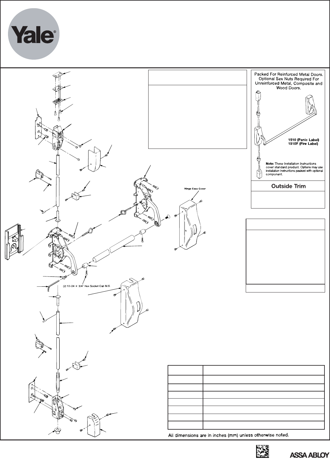 User Manual: Yale 1510 Surface Vertical Rod Exit Device Installation Instructions Installation Instructions