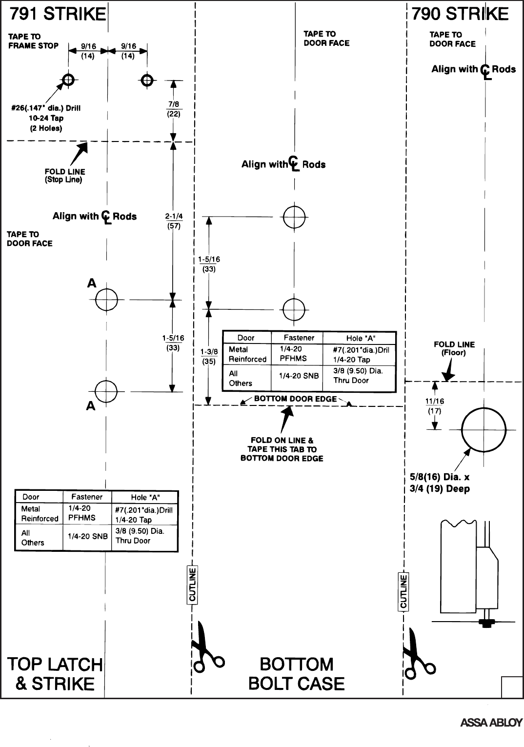 B. Extend centerline of Rods and Strikes from "Device Template" to door top and