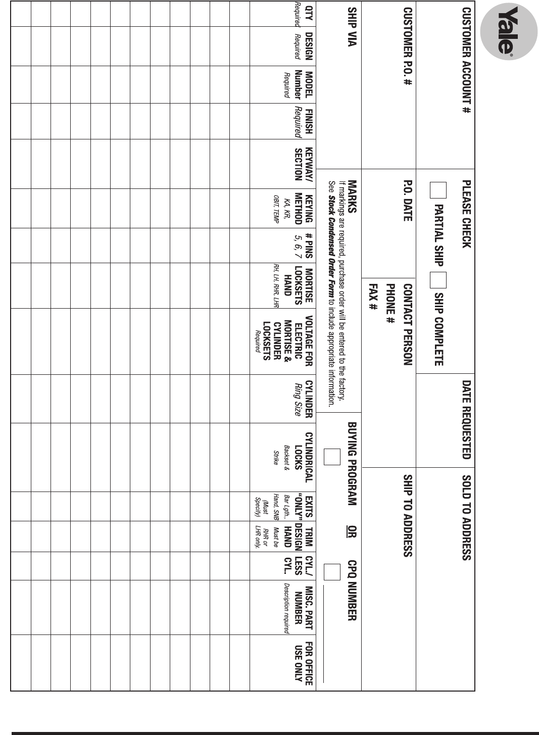 Yale®KeyMark®Keying Charges, Keys and Key Blanks ....................43