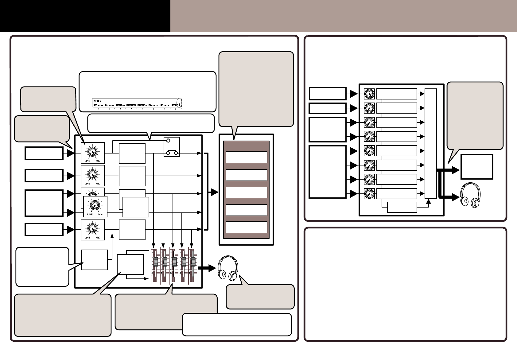 Este tipo de configuración le permite utilizar la 01X para mezclar los distintos canales