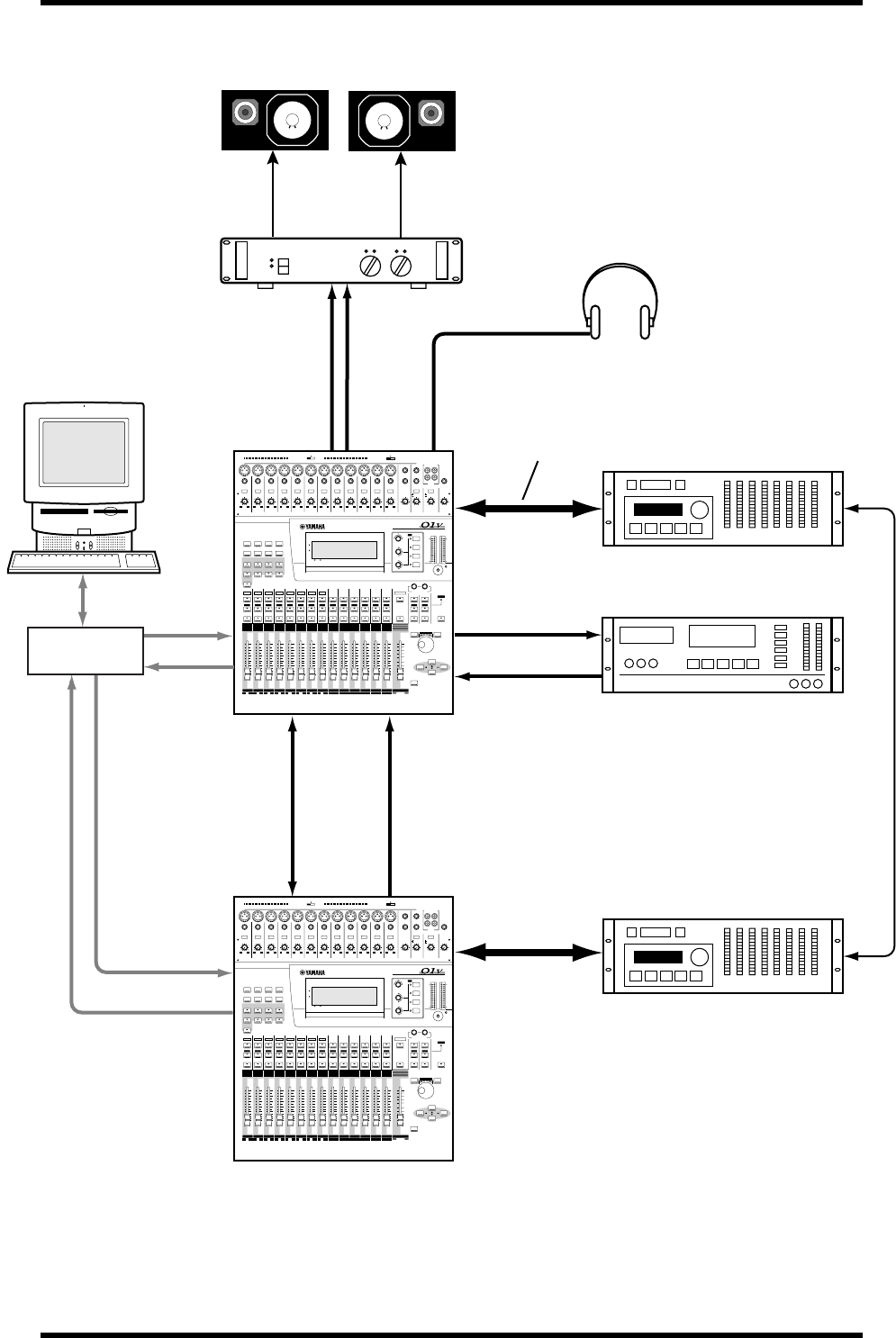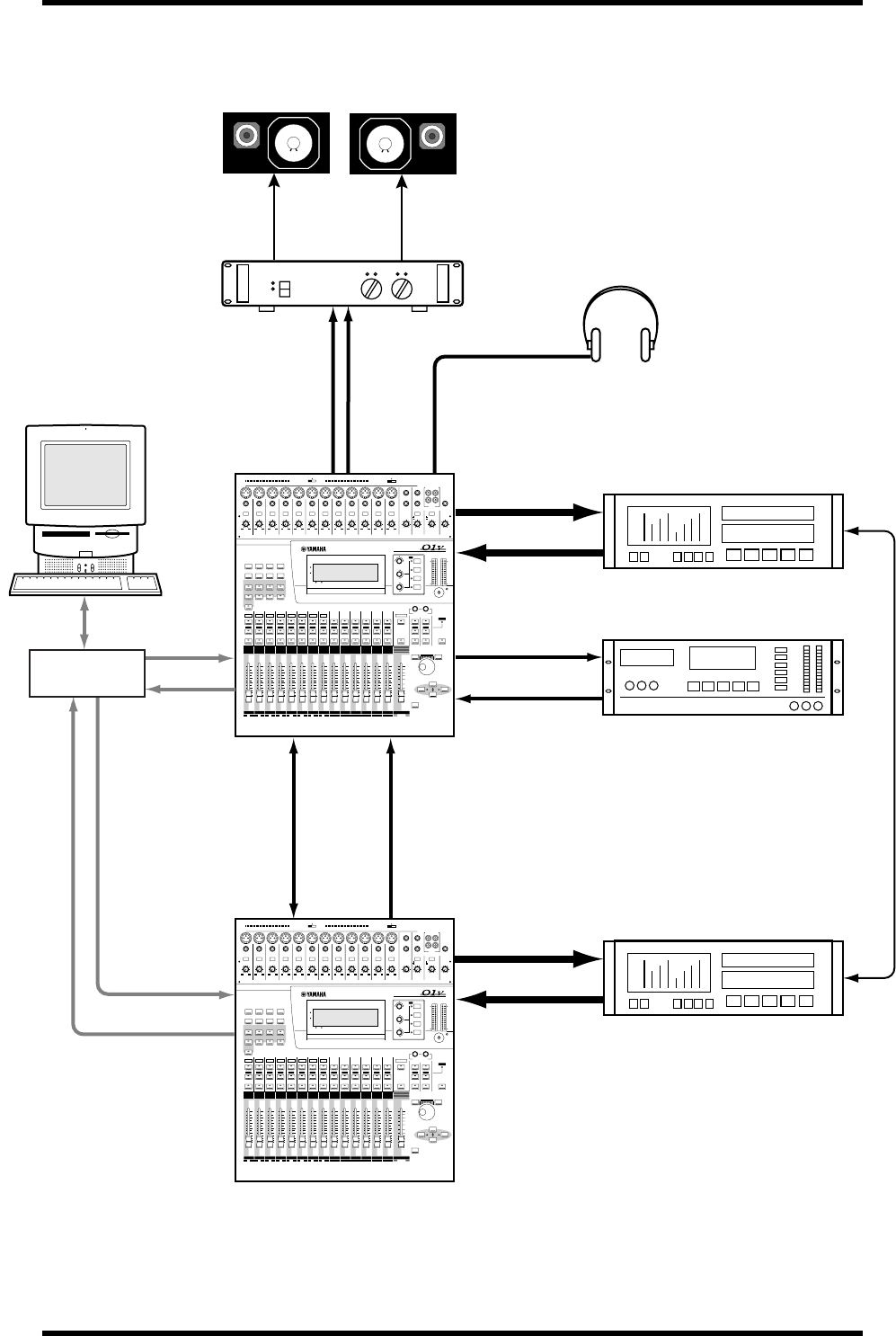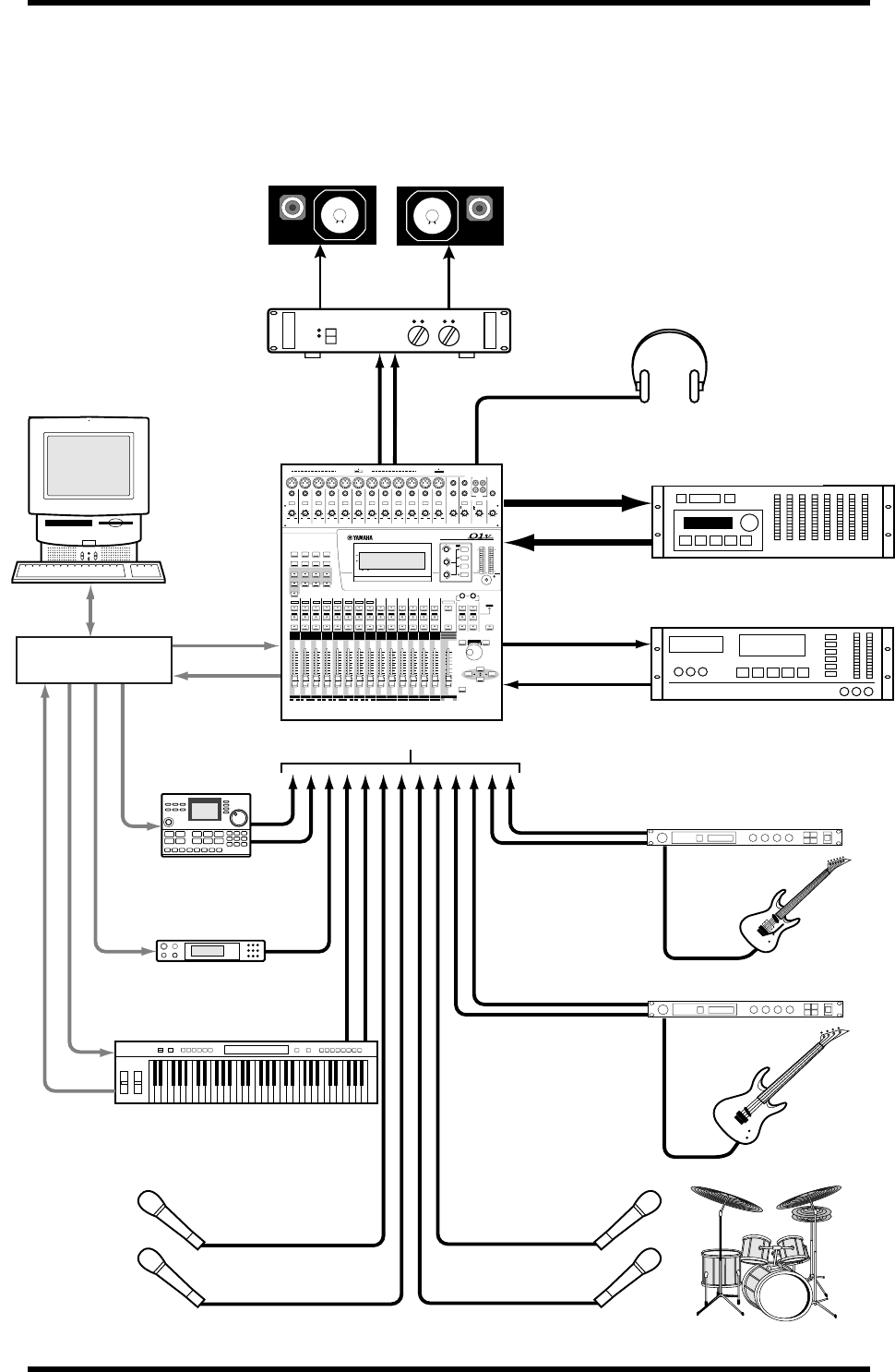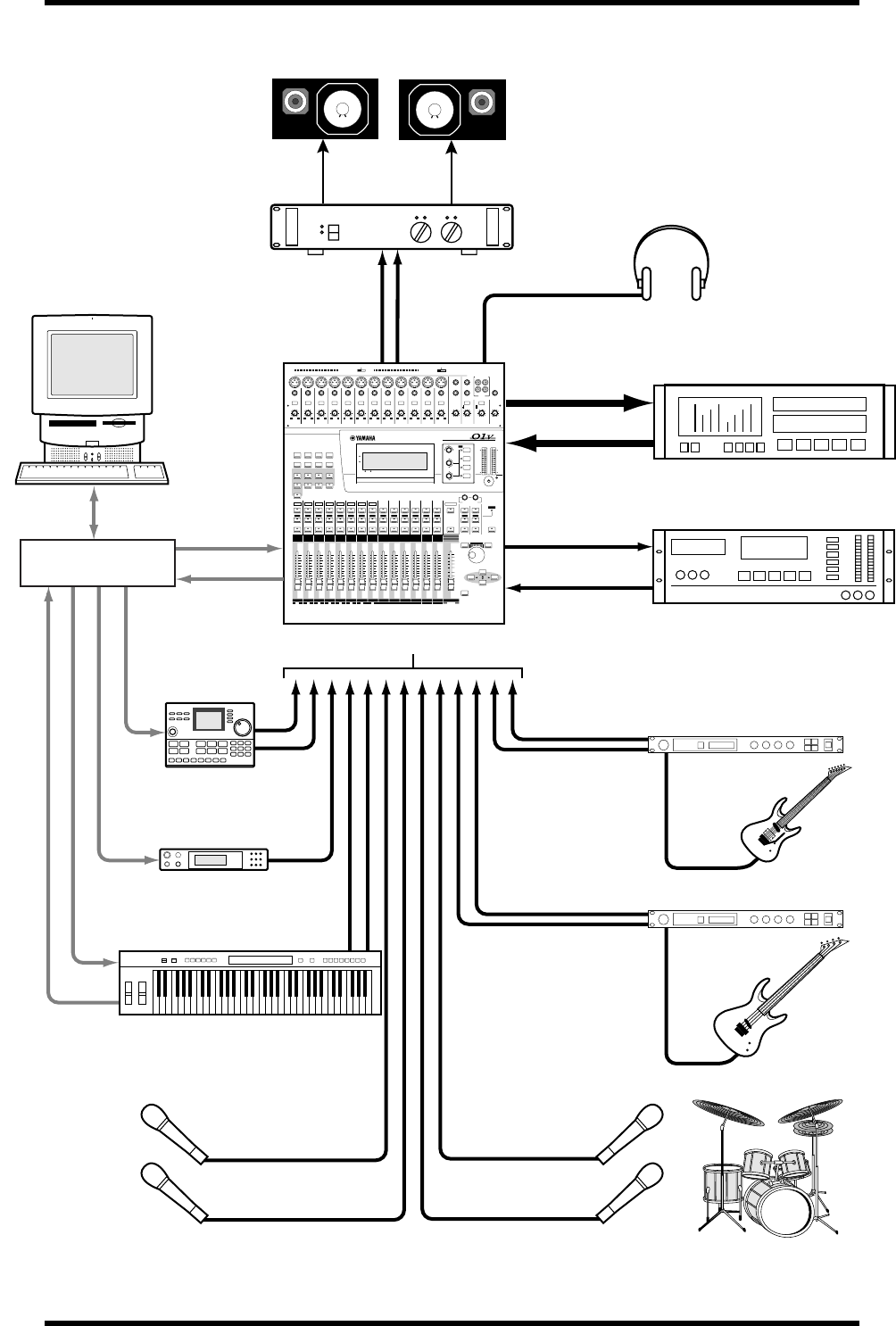 • Spegnete tutti i dispositivi audio e gli altoparlanti quando collegate lo 01V. Con-