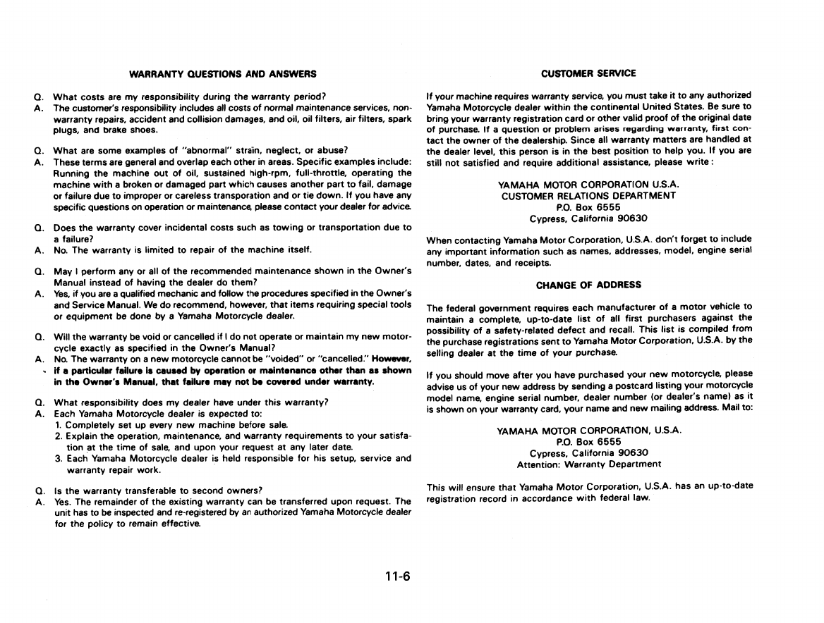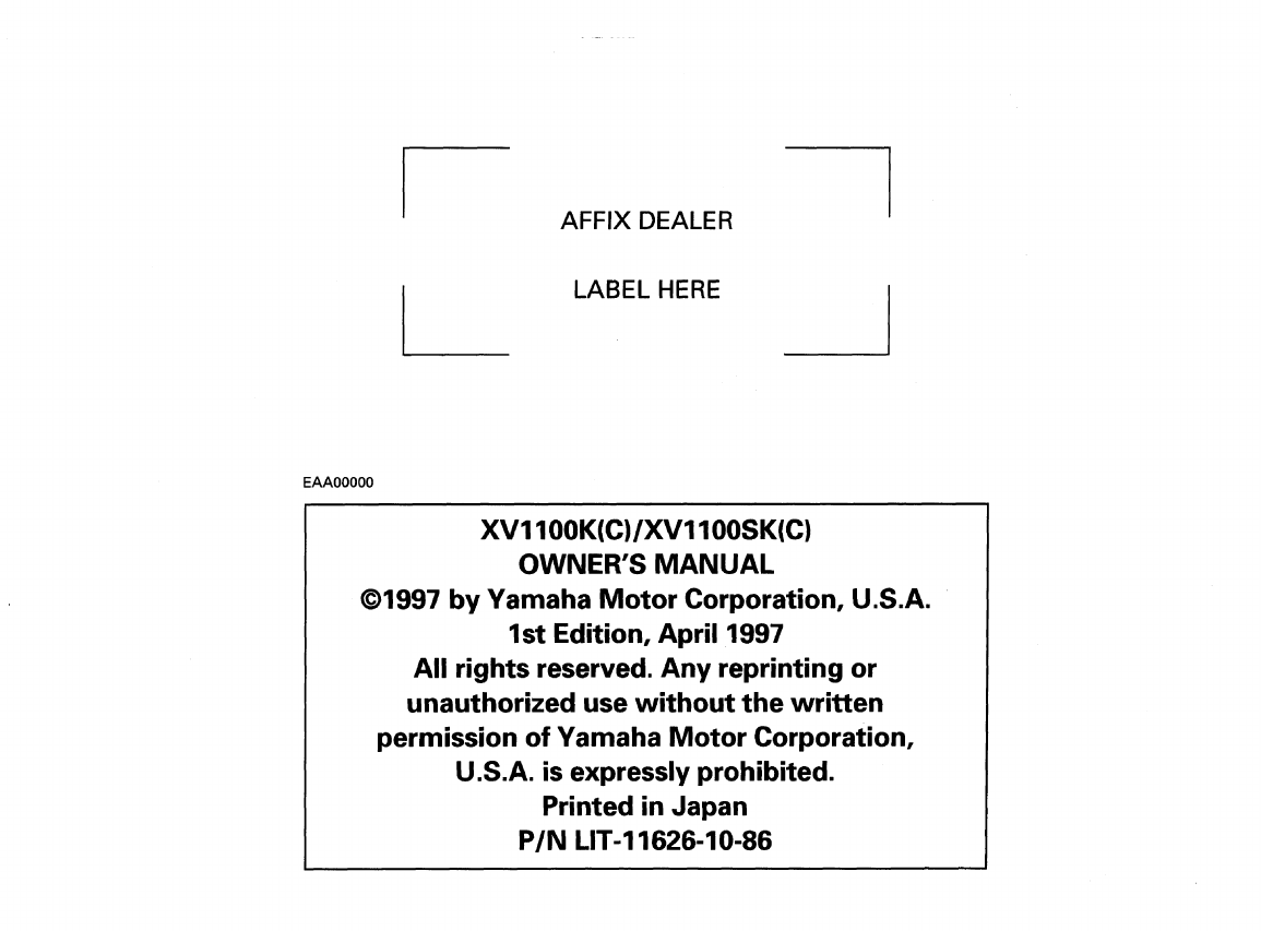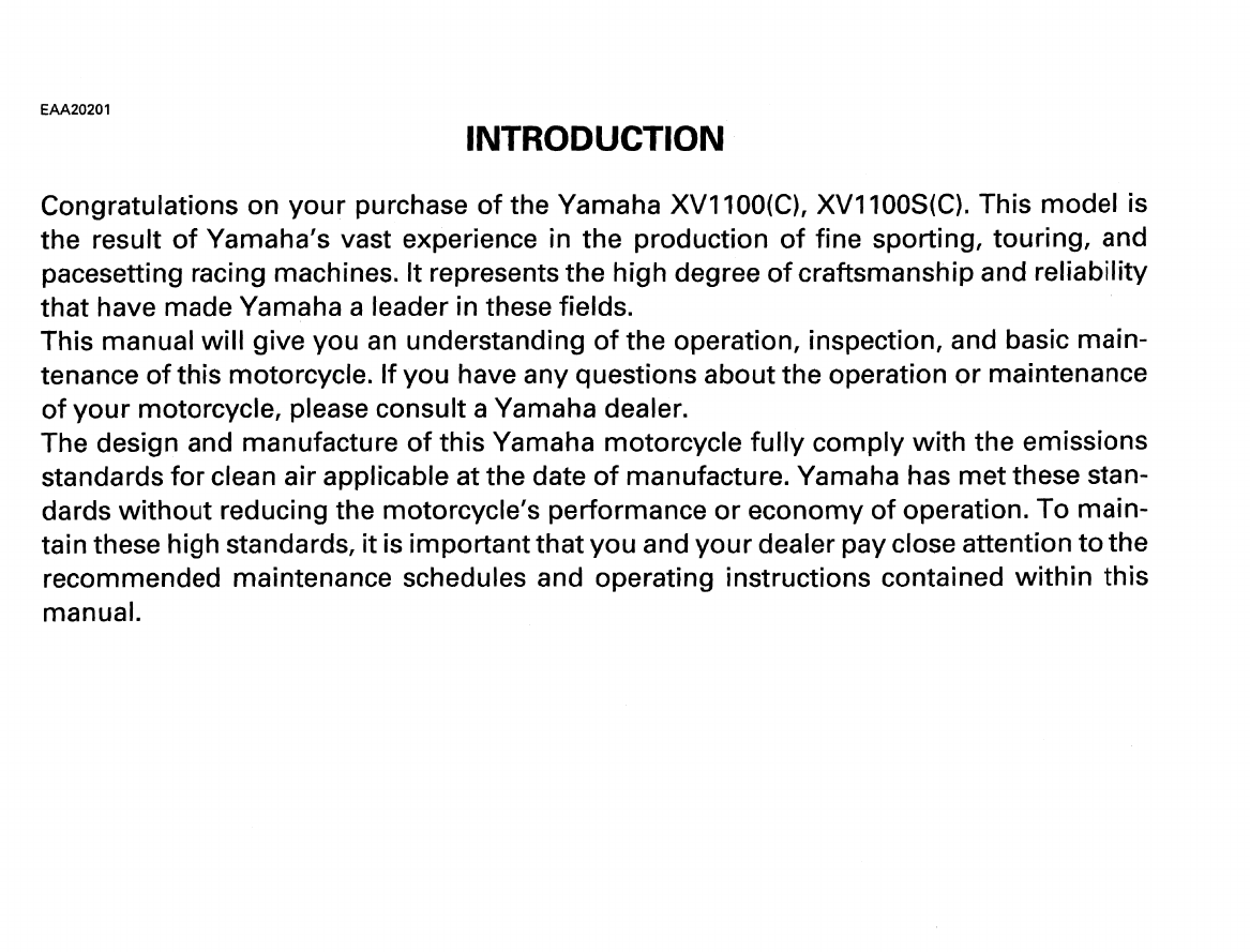 Yamaha 1998 Virago 1100 Owners Manual