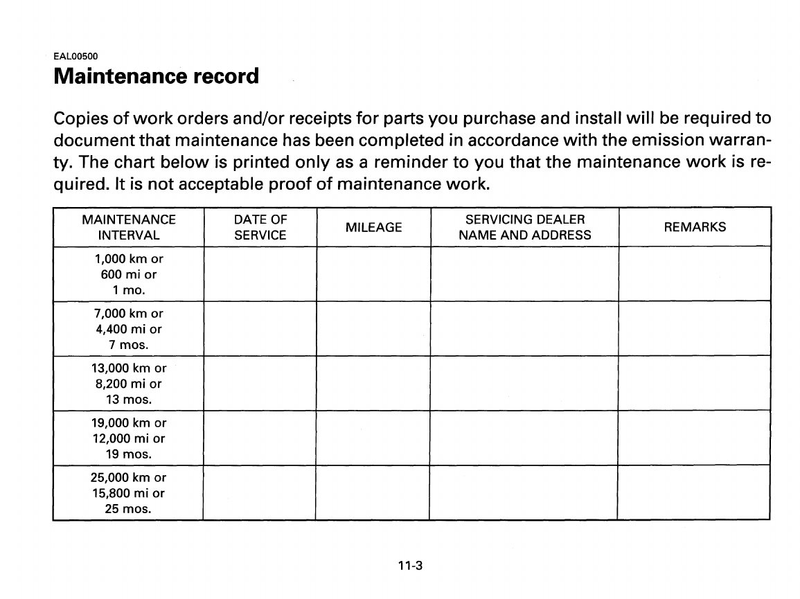 - MAINTENANCE RECORD