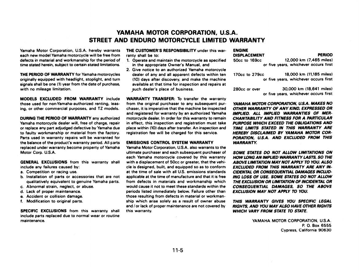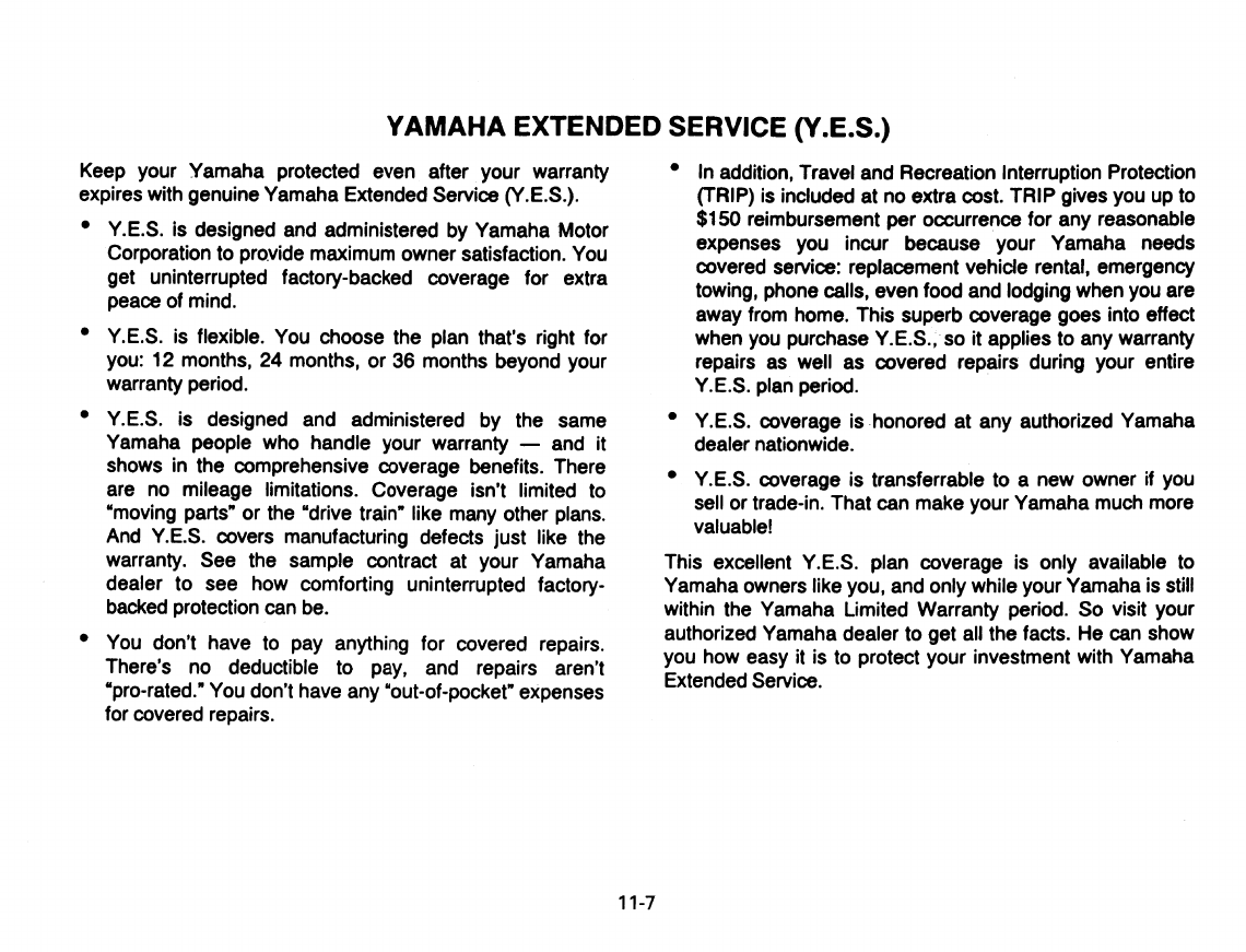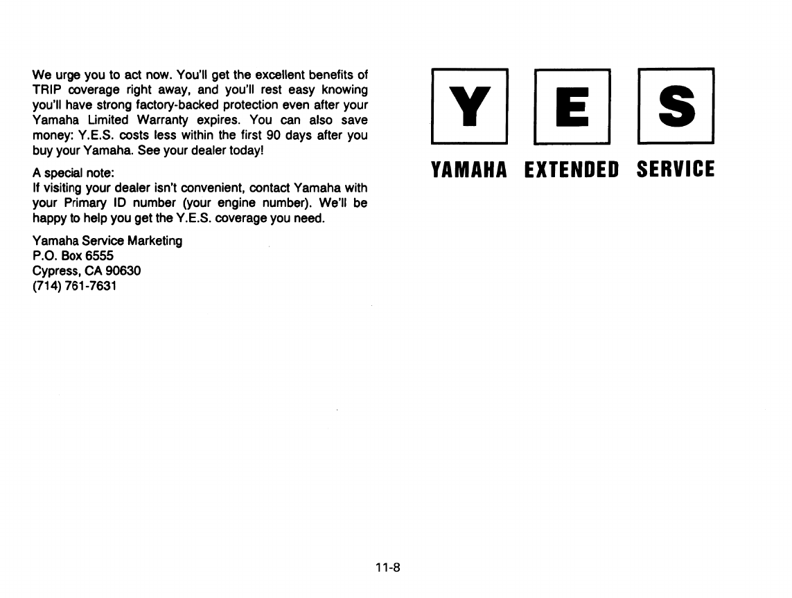 - YAMAHA EXTENDED SERVICE (Y.E.S.)