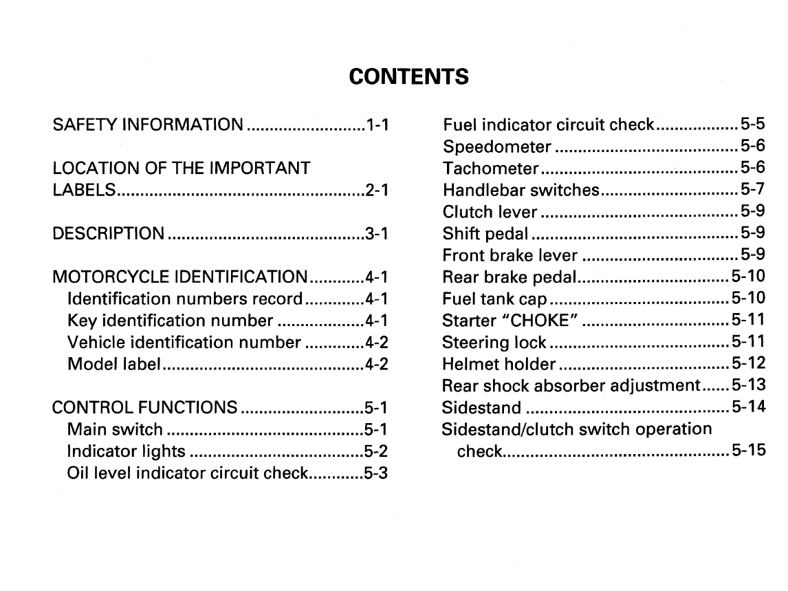 - LOCATION OF THE WARNING AND SPECIFICATION LABELS