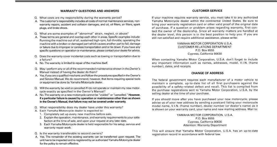 have any questions concerning the operation or maintenance of your motorcycle, please consult a Yamaha dealer.