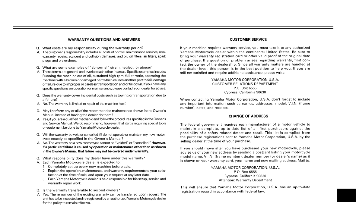 have any questions concerning the operation or maintenance of your motorcycle, please consult a Yamaha dealer.