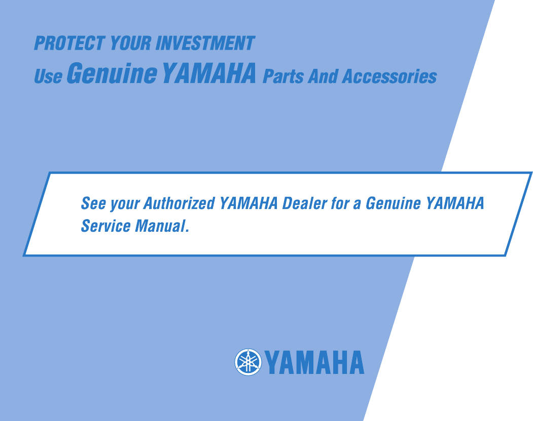 motorcycle. To maintain these high standards, it is important that you and your Yamaha dealer pay close attention to the