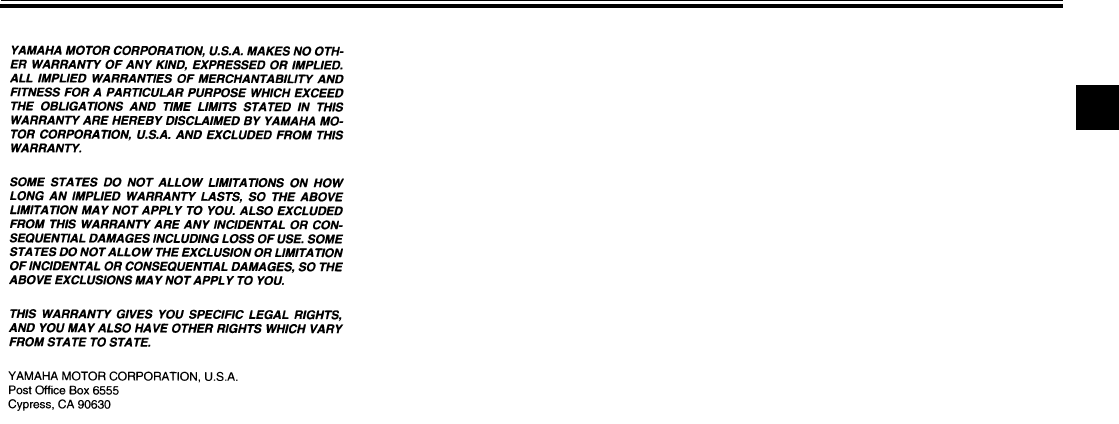 the date of manufacture. Yamaha has met these standards without reducing the performance or economy of operation of the