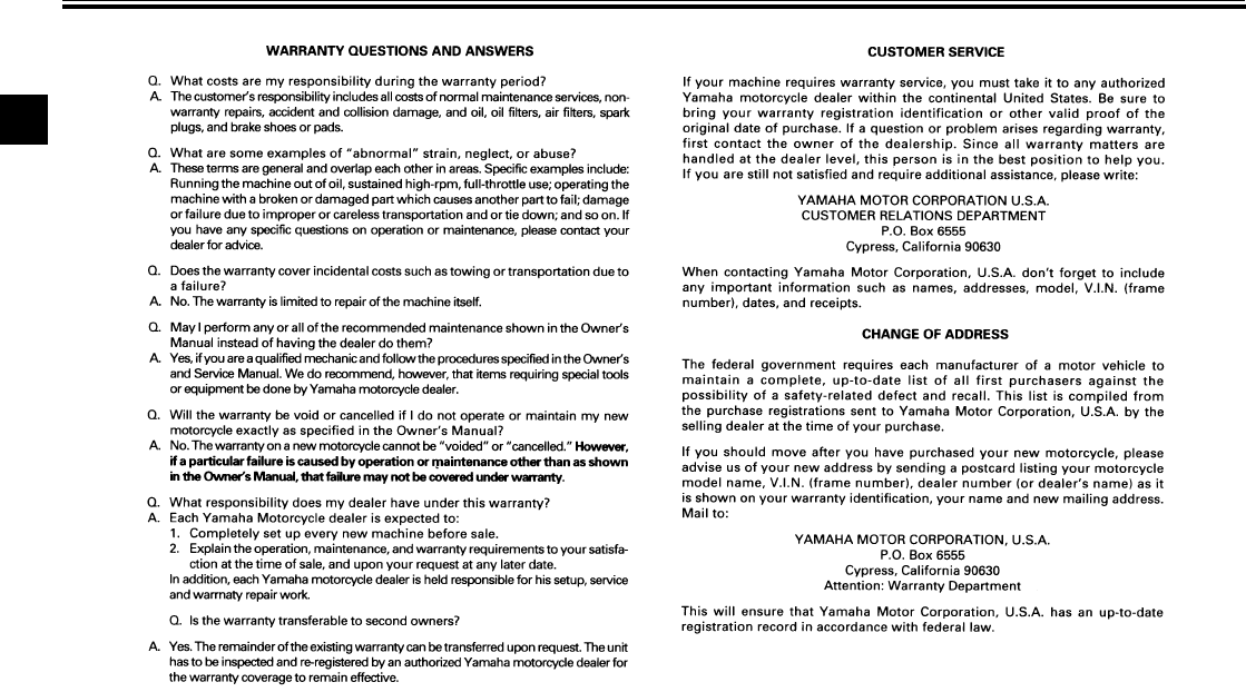 have any questions concerning the operation or maintenance of your motorcycle, please consult a Yamaha dealer.