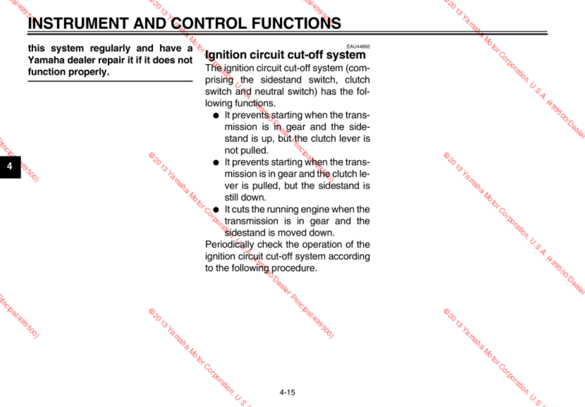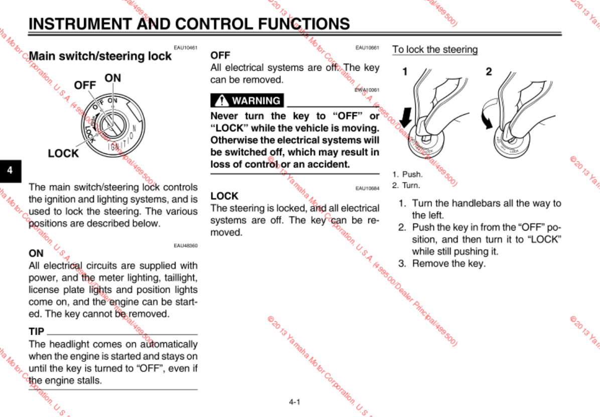 - Main switch/steering lock