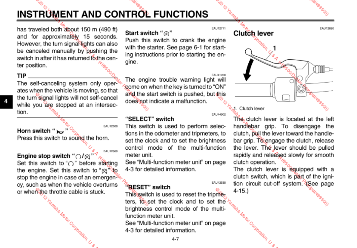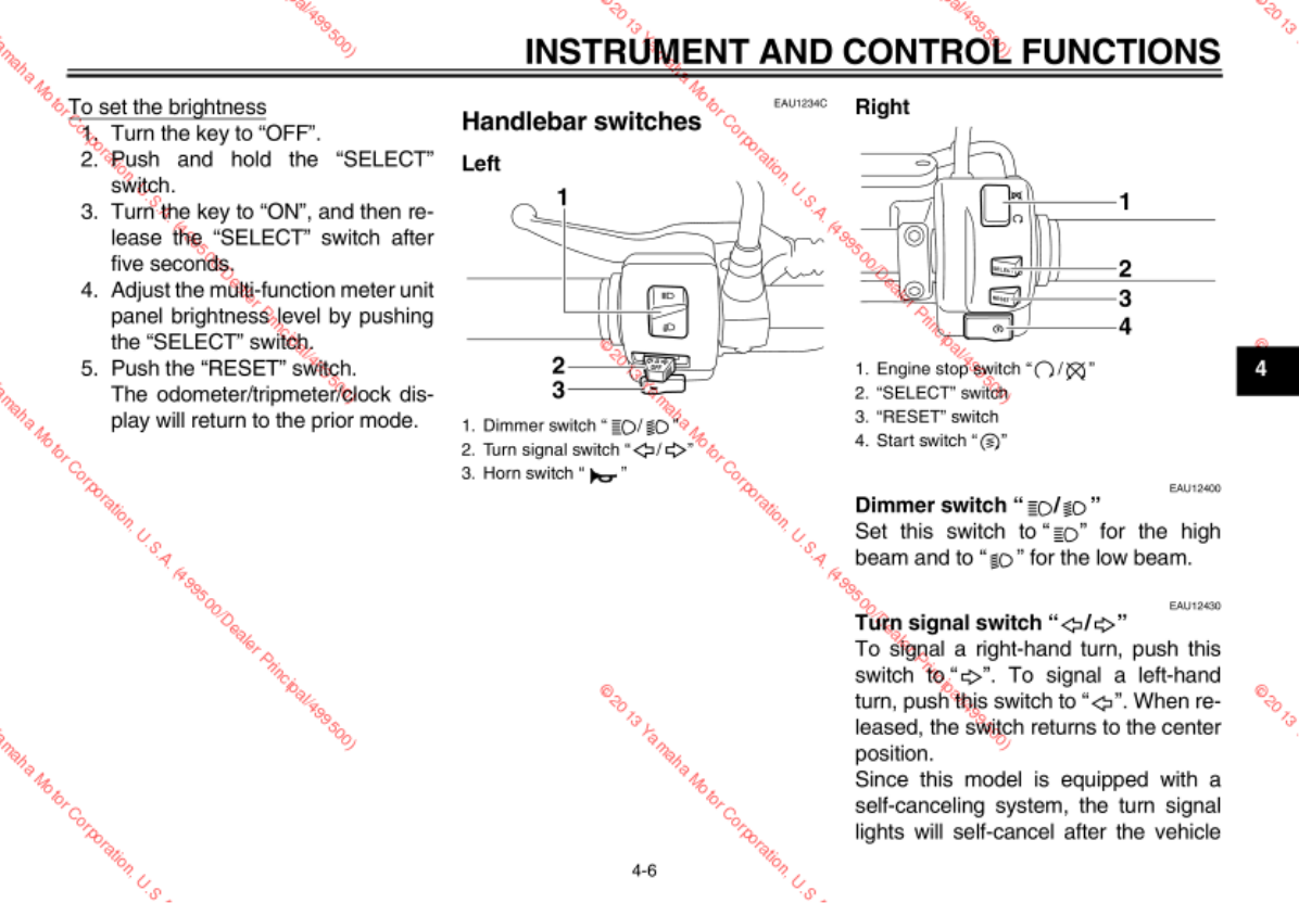 - Handlebar switches