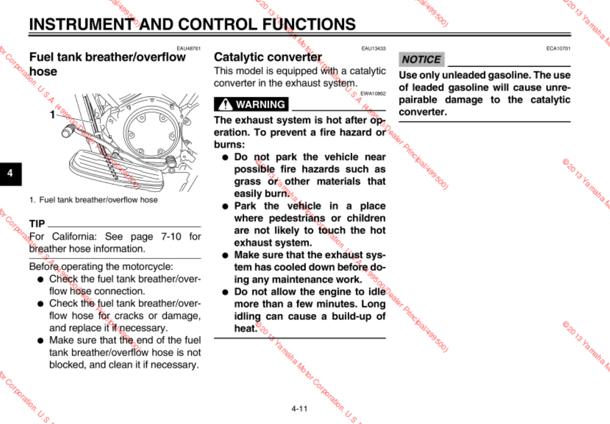 - Fuel tank breather/overflow hose