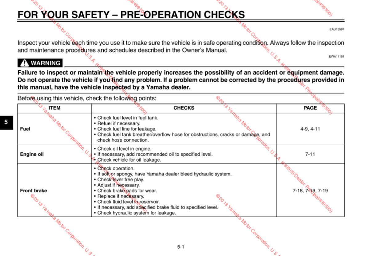 - FOR YOUR SAFETY â•fi PRE-OPERATION CHECKS