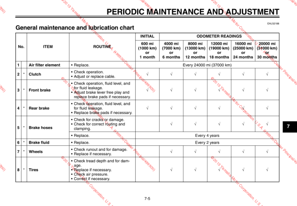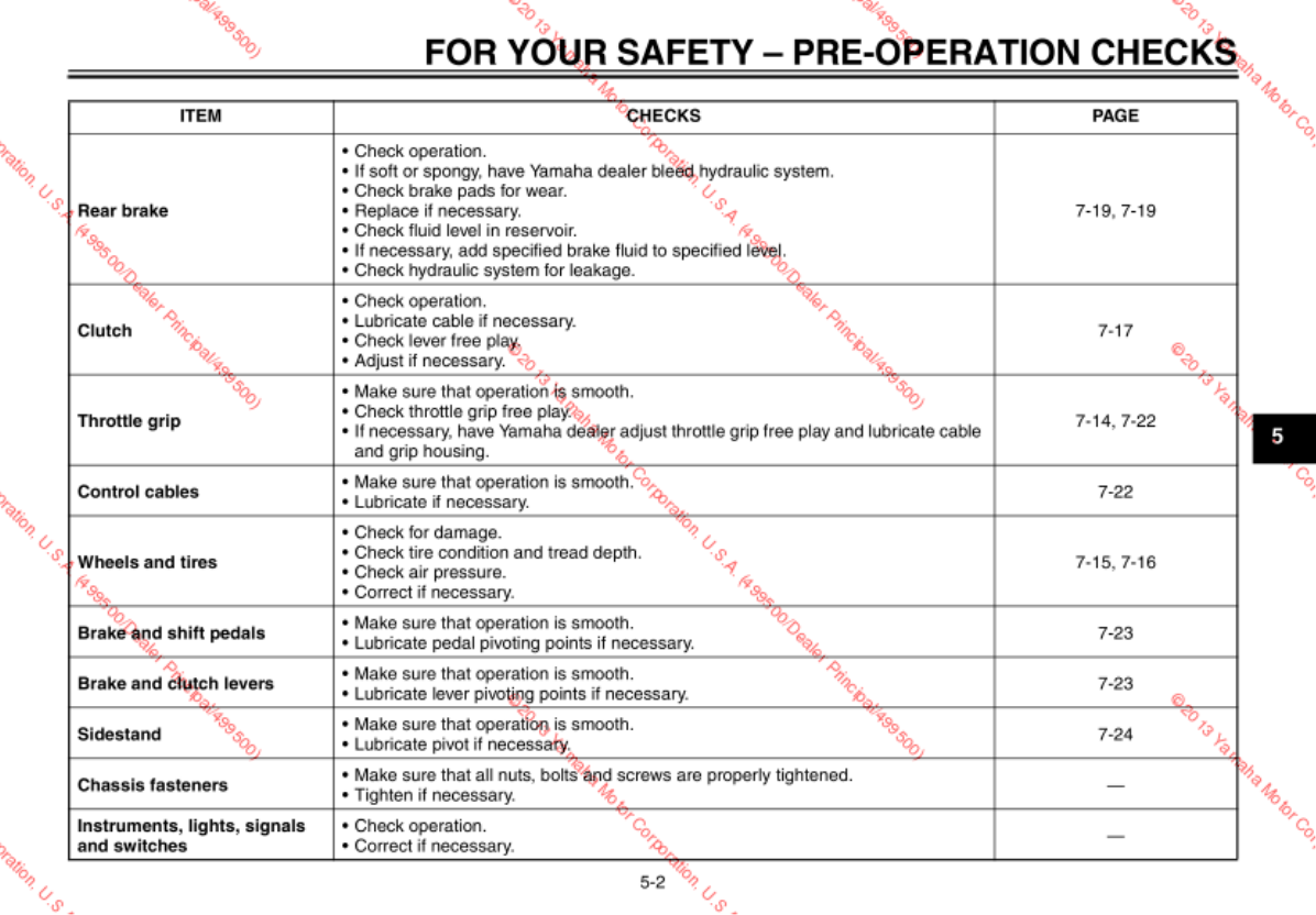 - Checking and lubricating the brake and clutch levers